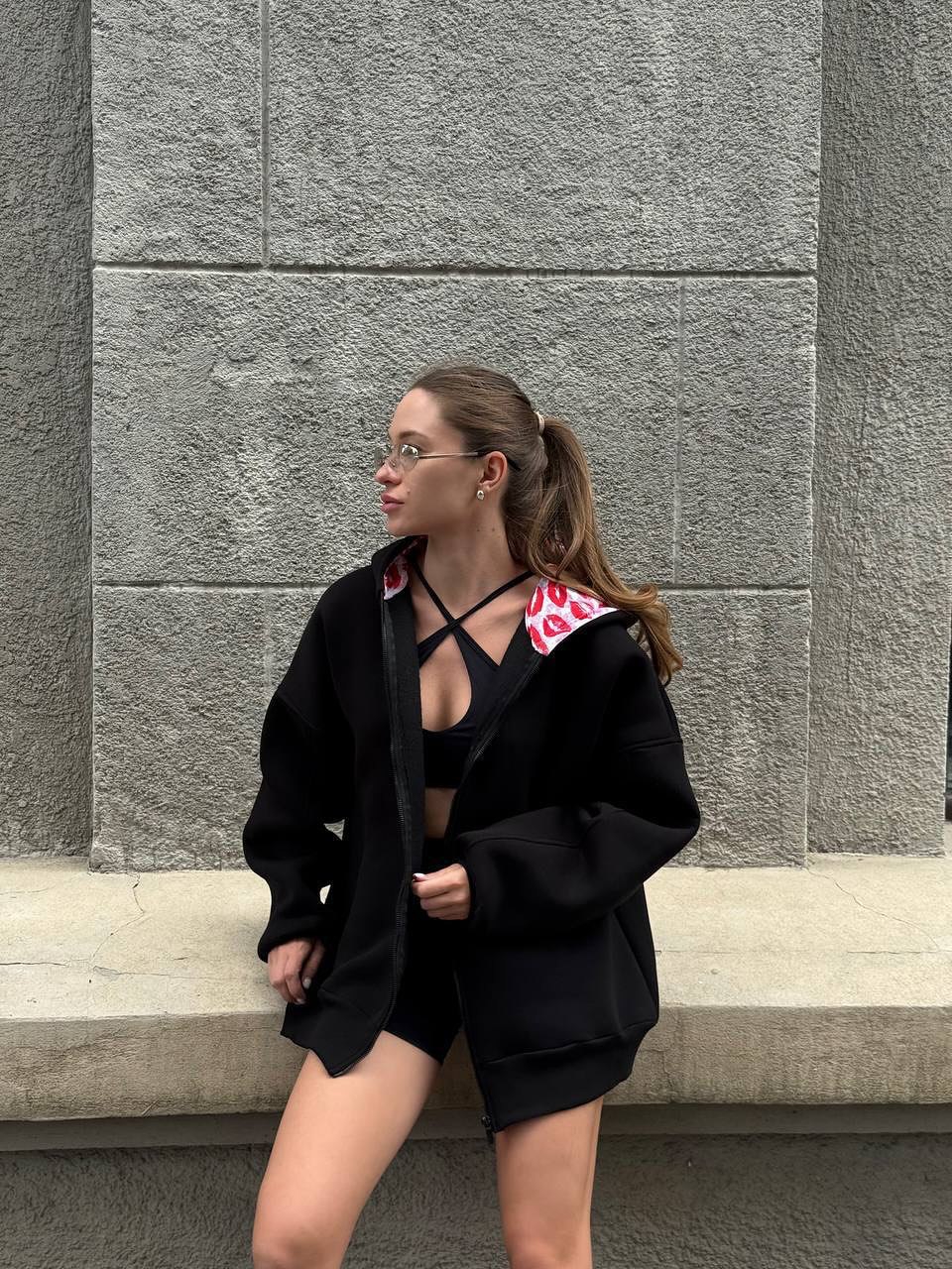 Boyfriend-style Oversize Lip Print Hooded Sweatshirt For Women