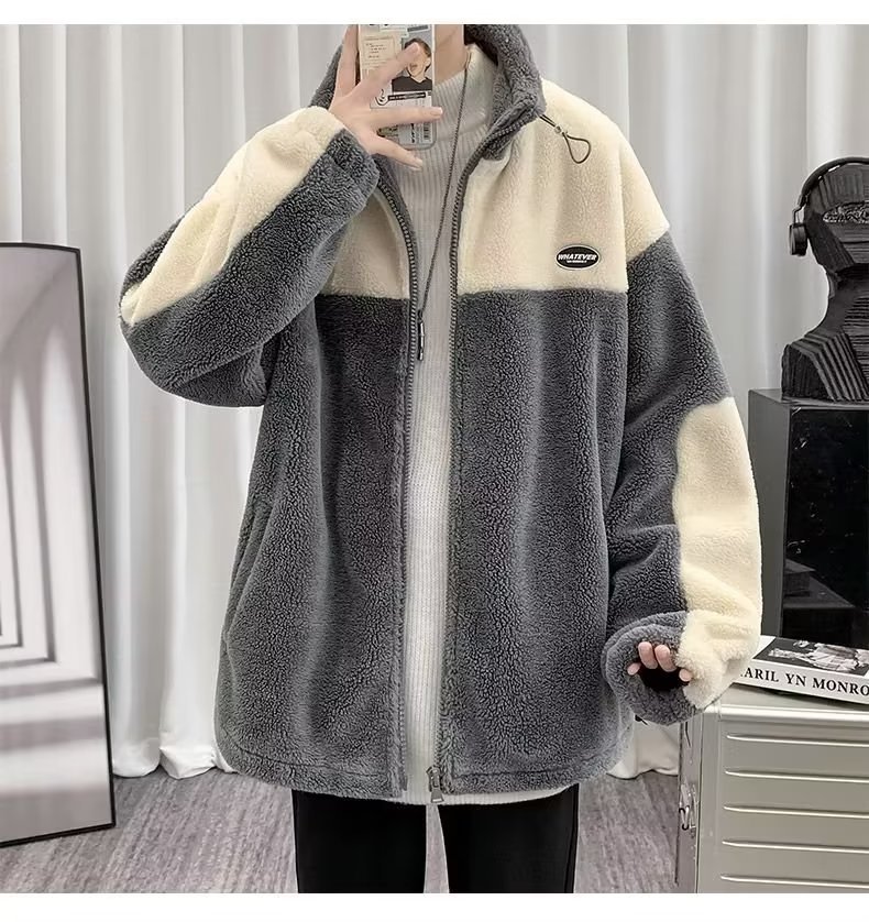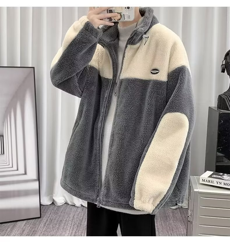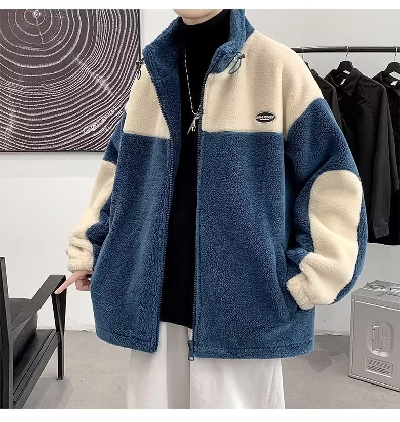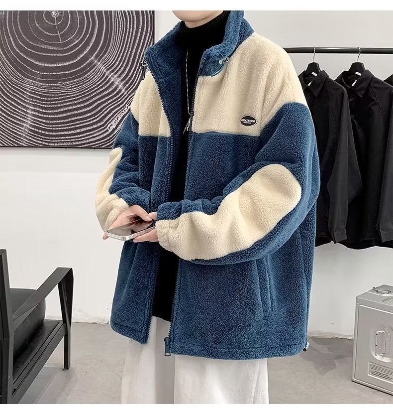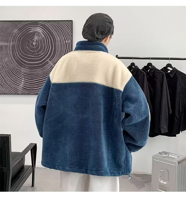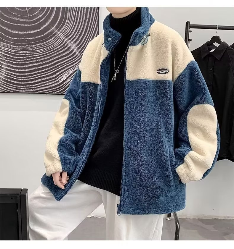 Mens Color-Block Thickened Casual Warm Cotton Padded Jacket