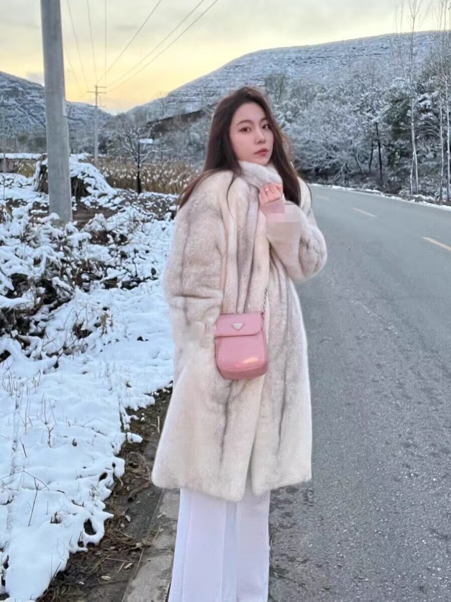 Women's Cross-Design Mink Fur CoatFull-Fur Integrated Design