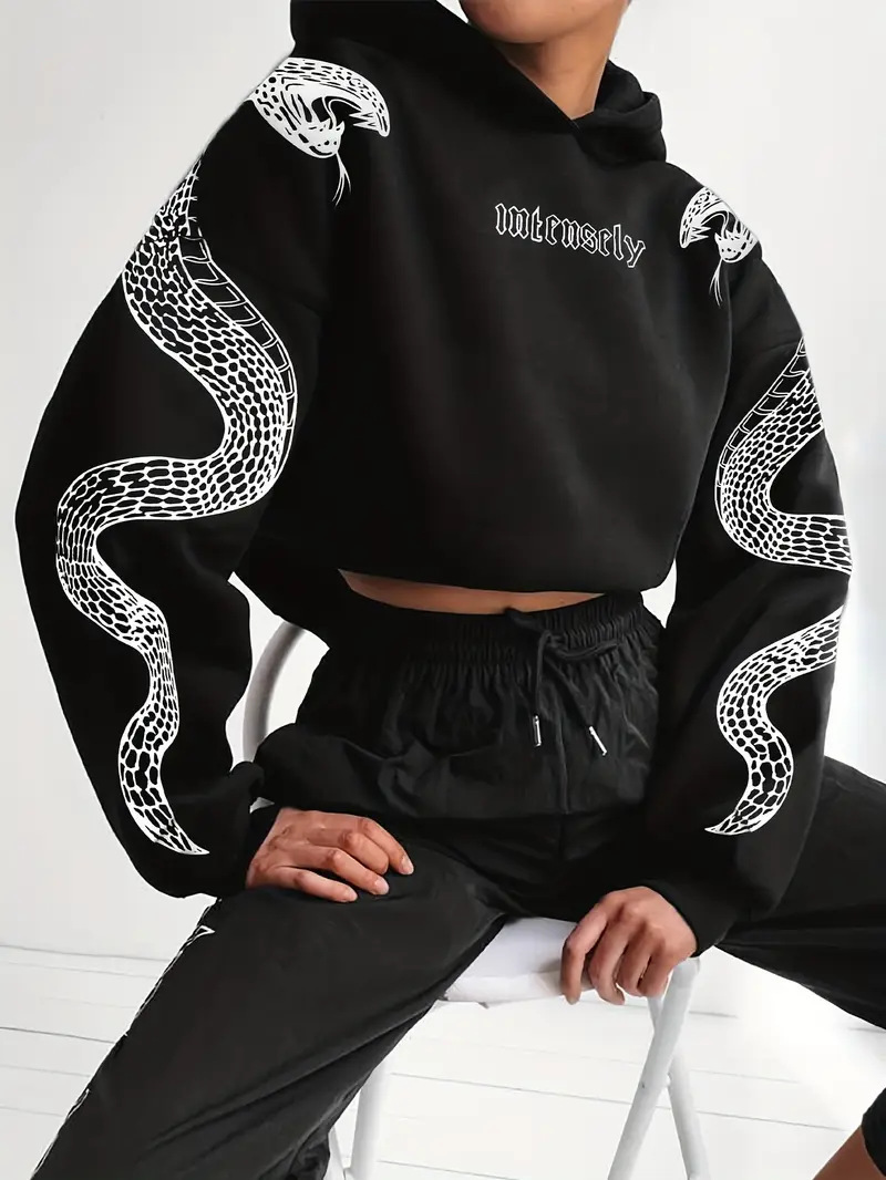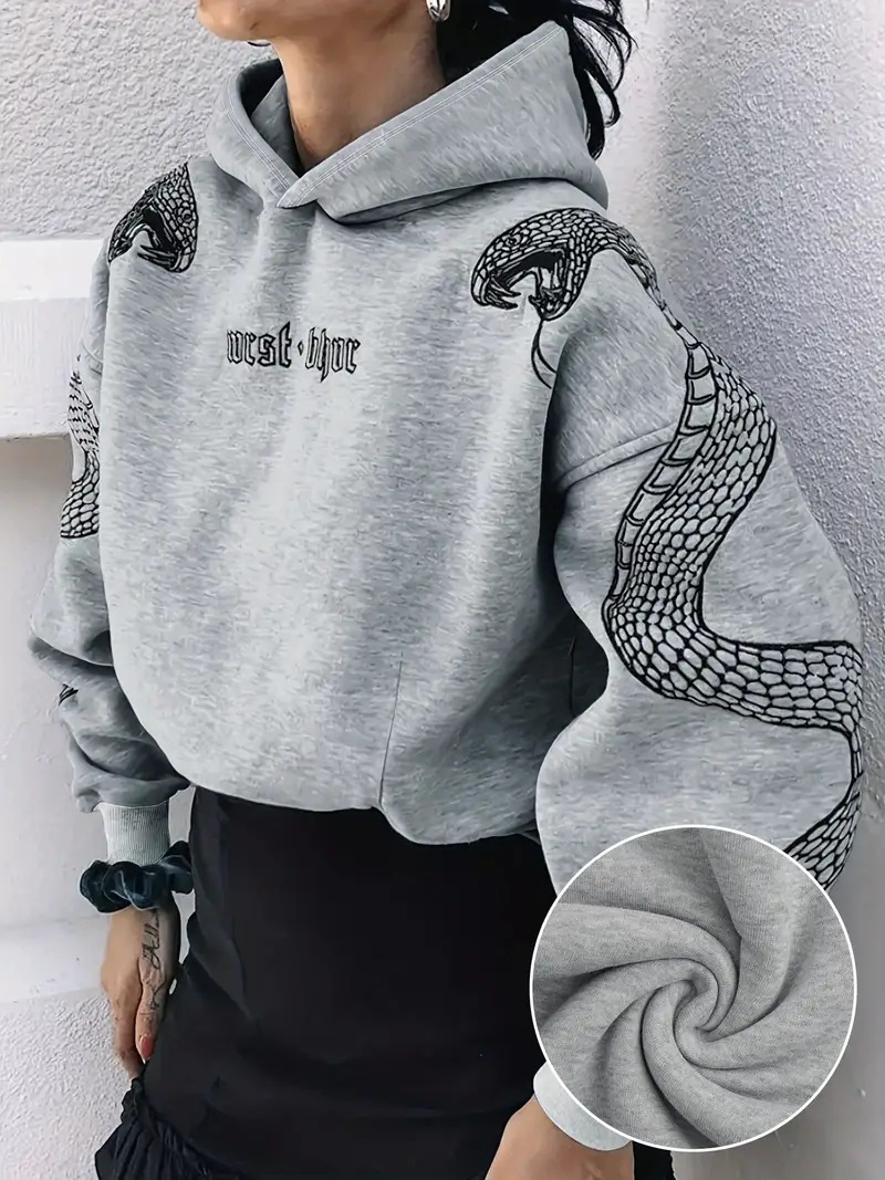 Women's Printed Hooded Pullover Loose-fit Vintage Sweatshirt Top